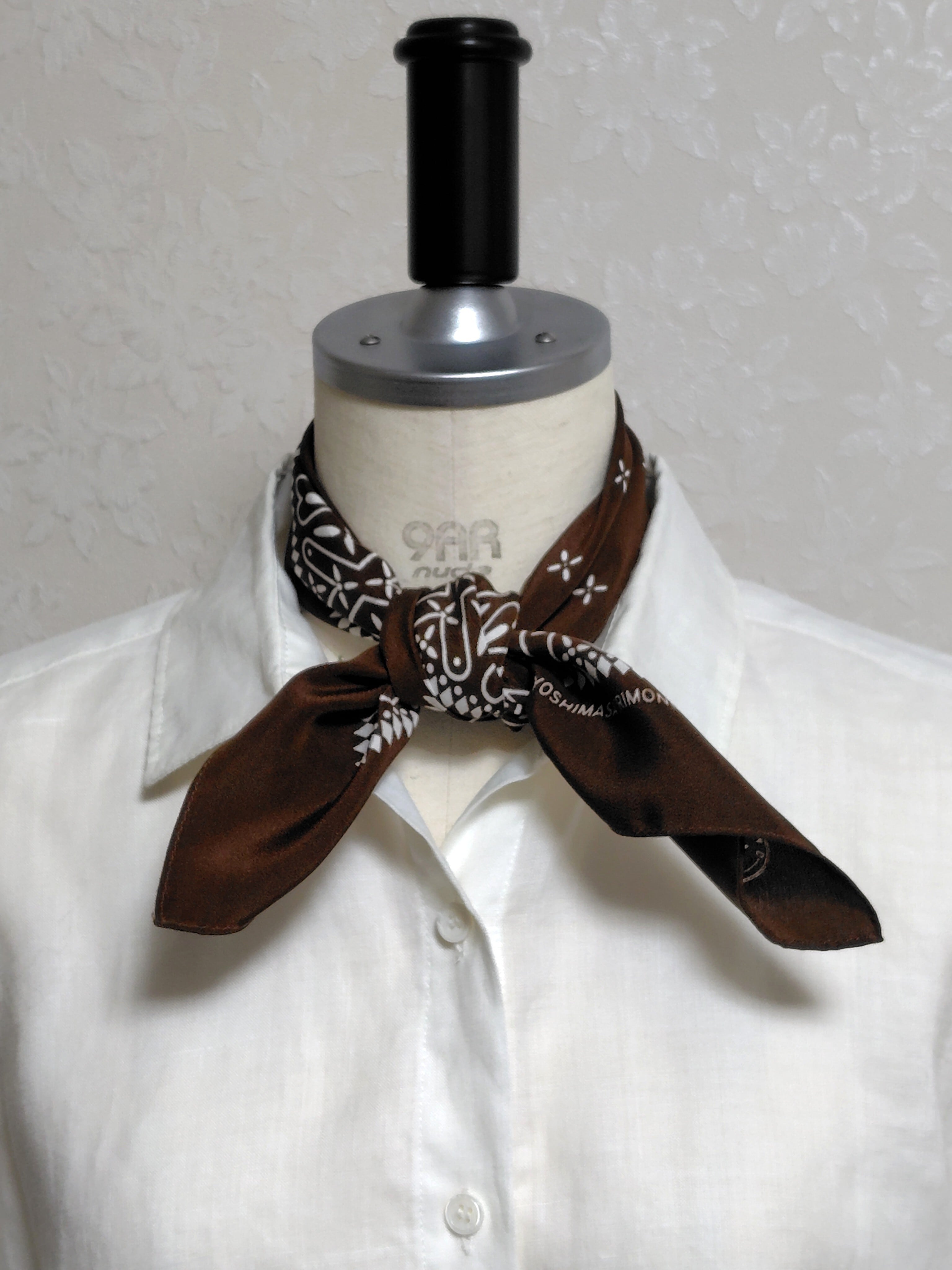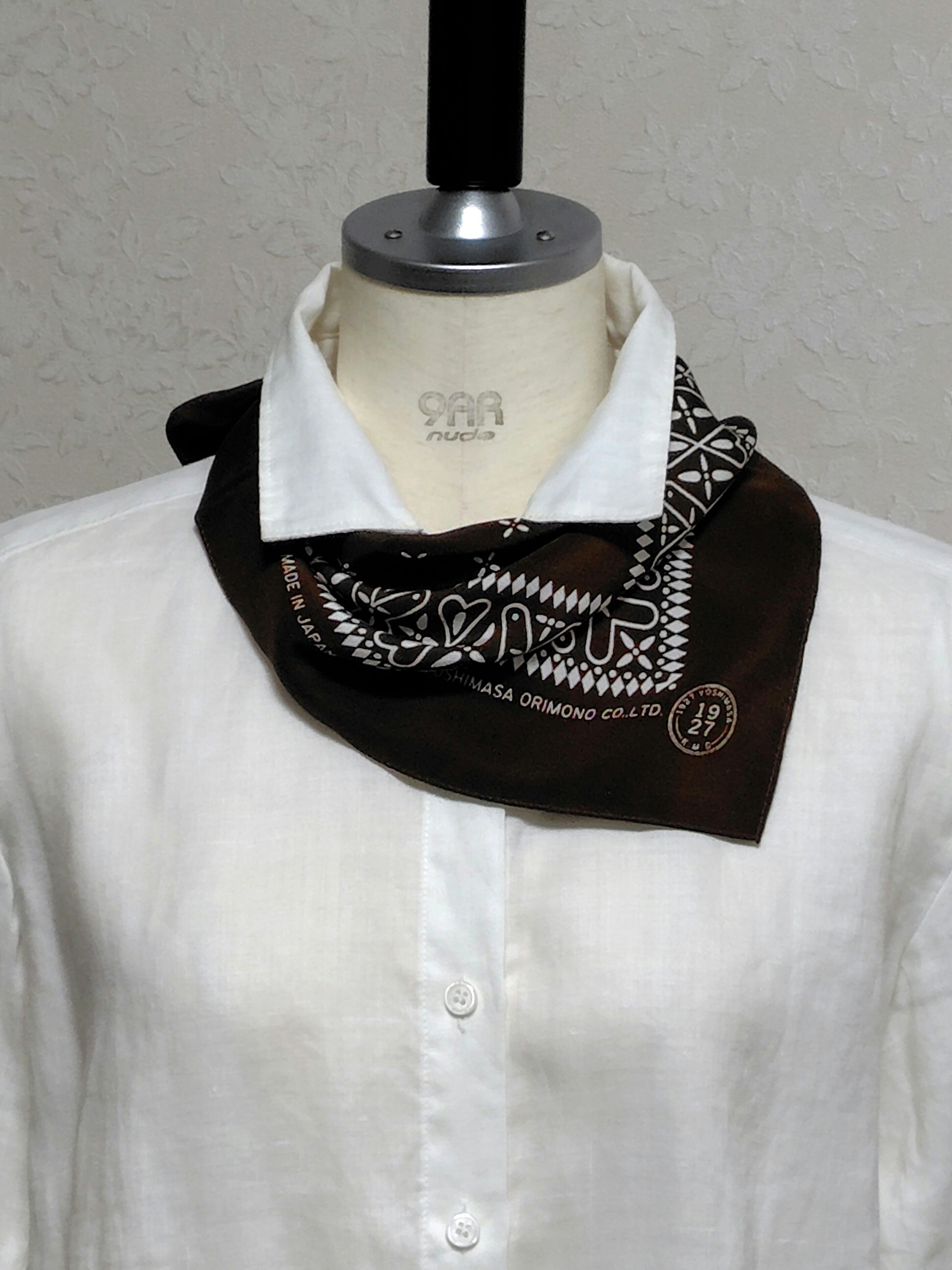 Snoop/ 洗えるシルクスカーフ/ 浜ちりめんシルク【Brown-クロス柄 53×53】